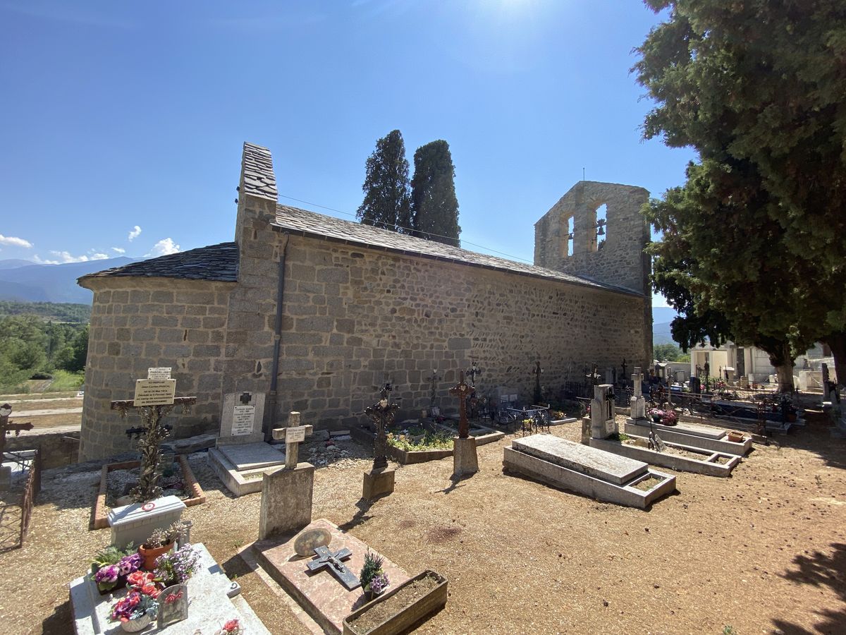 La façade occidentale, en moellons irréguliers et cantonnée de chaînages en pierre de taille, est percée d’une baie en plein cintre et surmontée d’un clocher-mur à trois baies campanaires. L’ensemble de la chapelle illustre parfaitement l’art roman local et témoigne de la qualité des constructions religieuses médiévales dans le Conflent.