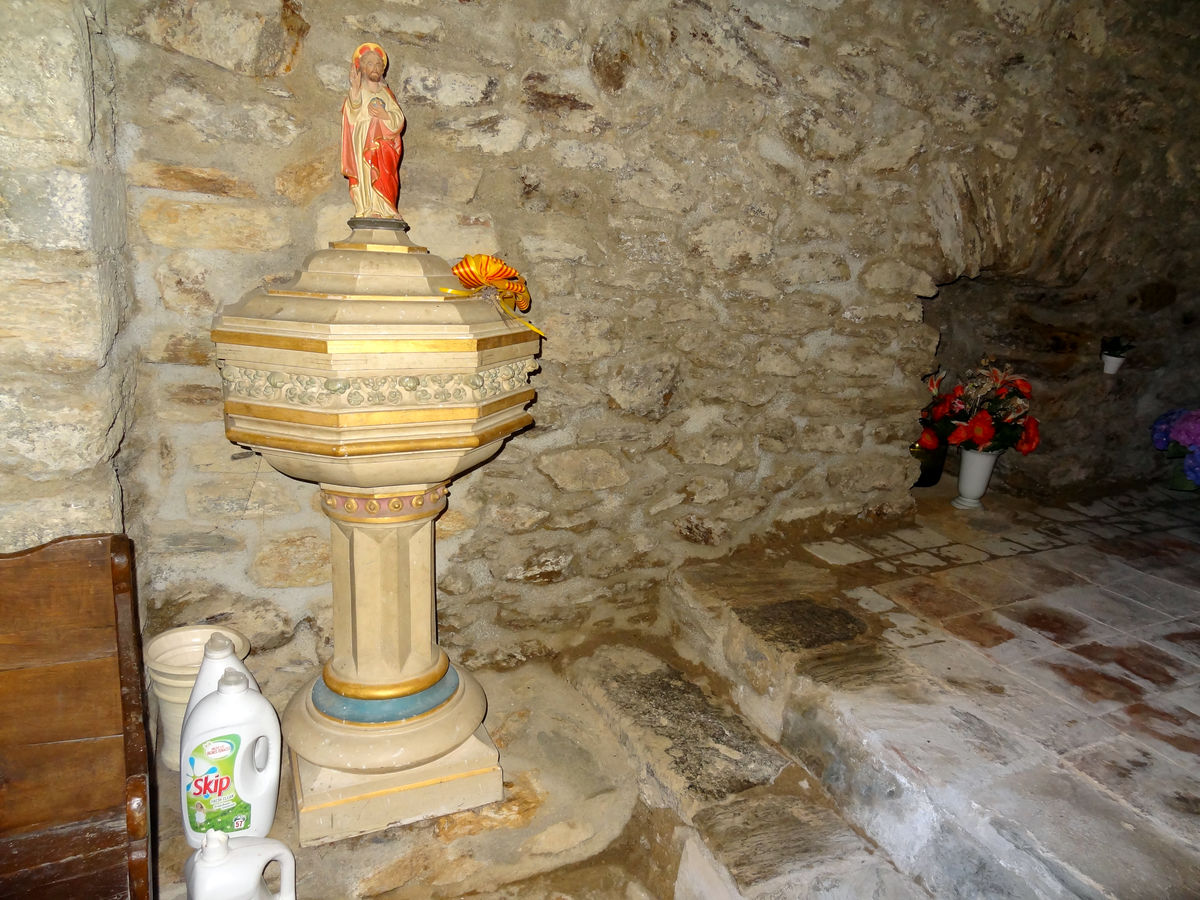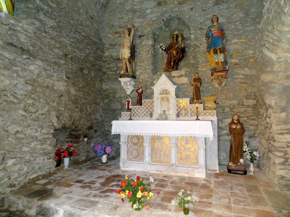 Enfin au sommet du retable se trouve un Christ en croix, et tout au-dessus une représentation de Dieu le père.