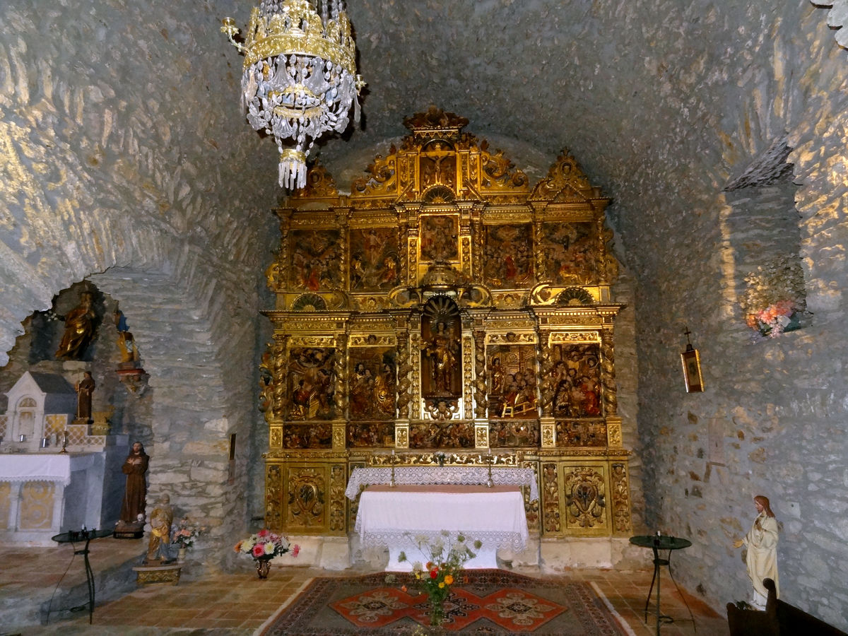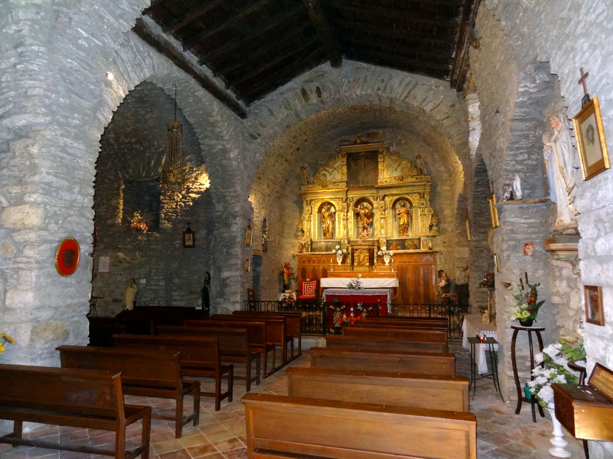 L’intérieur conserve plusieurs retables baroques, qui enrichissent son décor et contrastent avec la sobriété romane de la structure. Le retable du maître-autel se compose de 4 rangées. Les trois les plus basses, qui constituent le corps du retable, présentent toutes 5 casiers montrant des scènes religieuses variées.